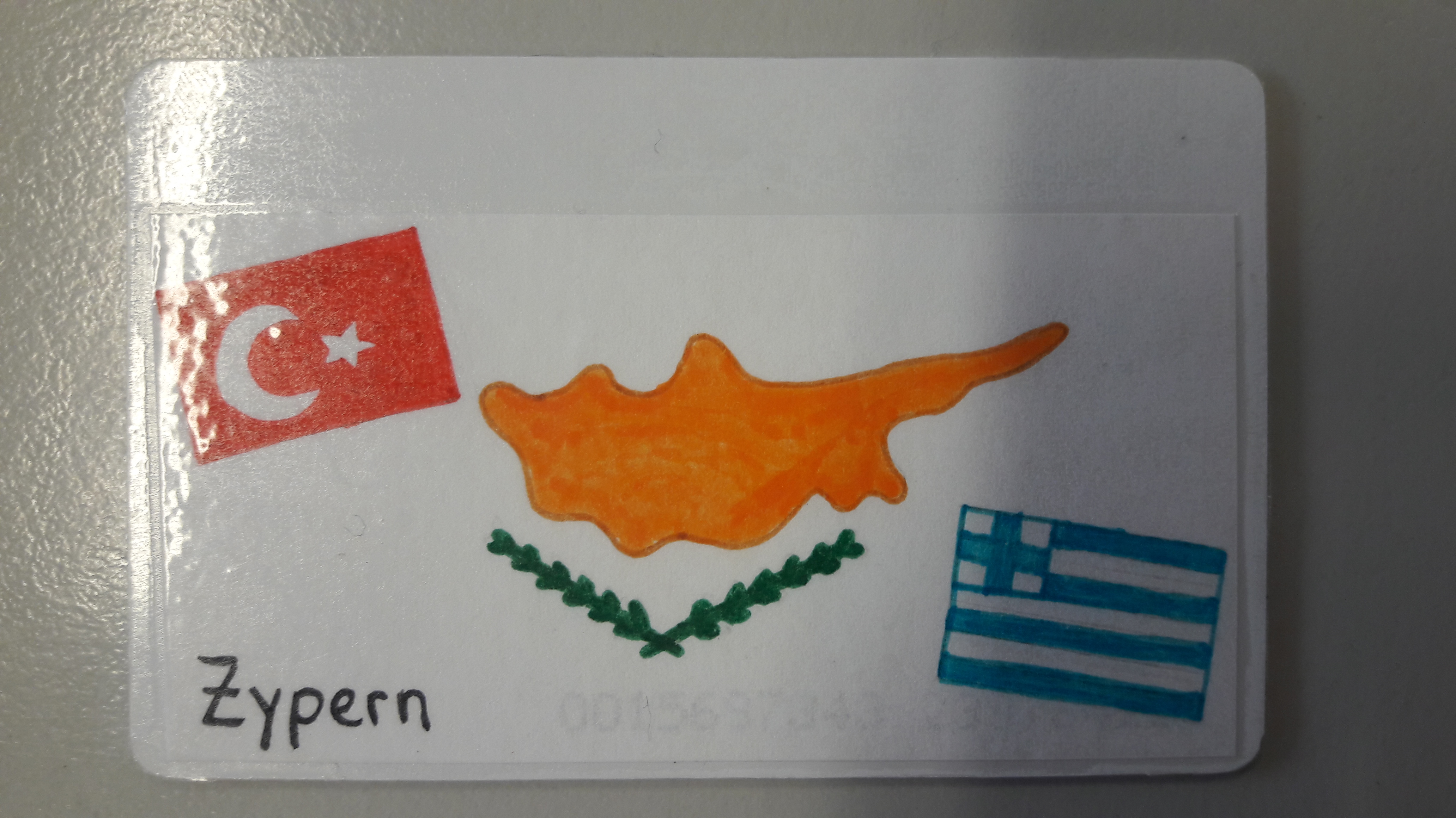 Bei meiner RFID-Karte habe ich mir überlegt das ich einfach die Zypern-Fahne als Hintergrund male und im Vordergrund die beiden Fahnen der Süd-/und Nordseite.